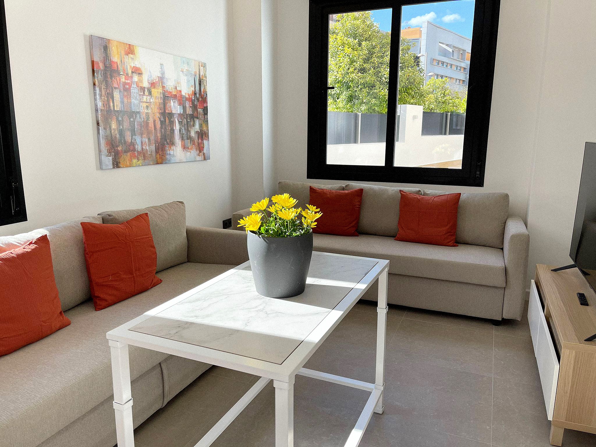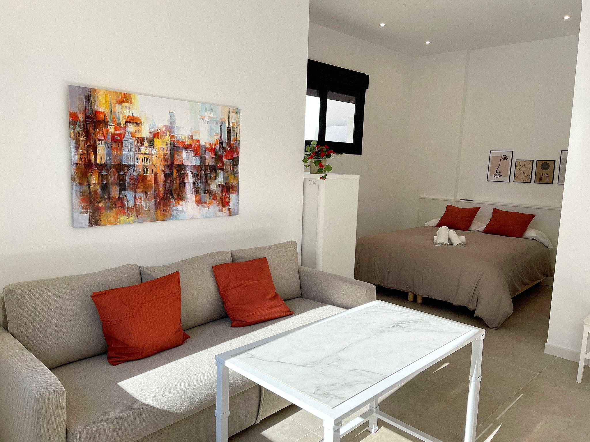 El apartamento cuenta con terraza, vistas a la ciudad, zona de estar, TV de pantalla plana, cocina totalmente equipada con nevera y horno y baño privado con ducha y artículos de aseo gratuitos. Hay microondas, tostadora y cafetera.